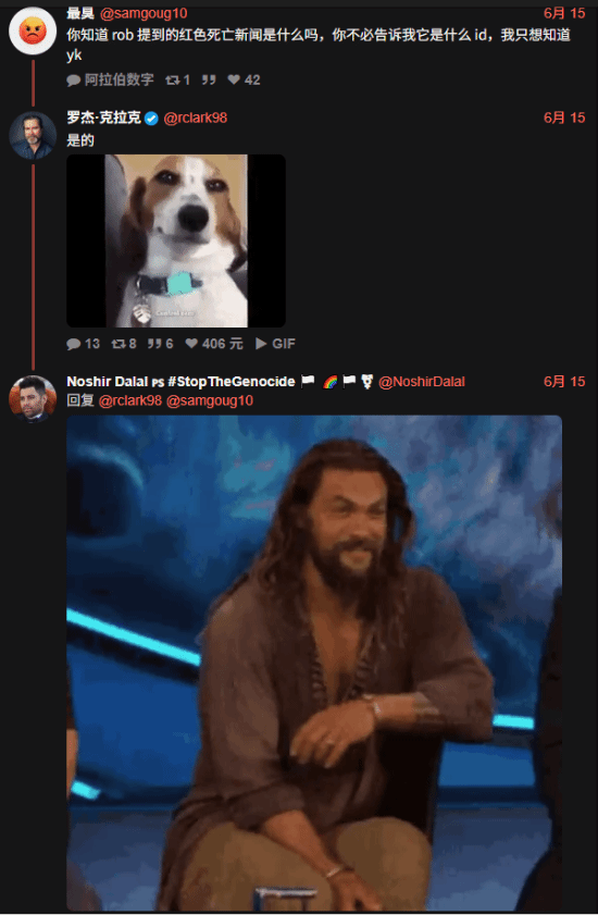 而亚瑟的演员Roger Clark和查尔斯的演员Roshir Dalal也对此事做出了回应。他们被问到是否知道Rob说的《荒野大镖客》新消息是什么,Roger直白地回答“Yes”,Roshir则用了一张“看破不说破”的GIF表情回应。